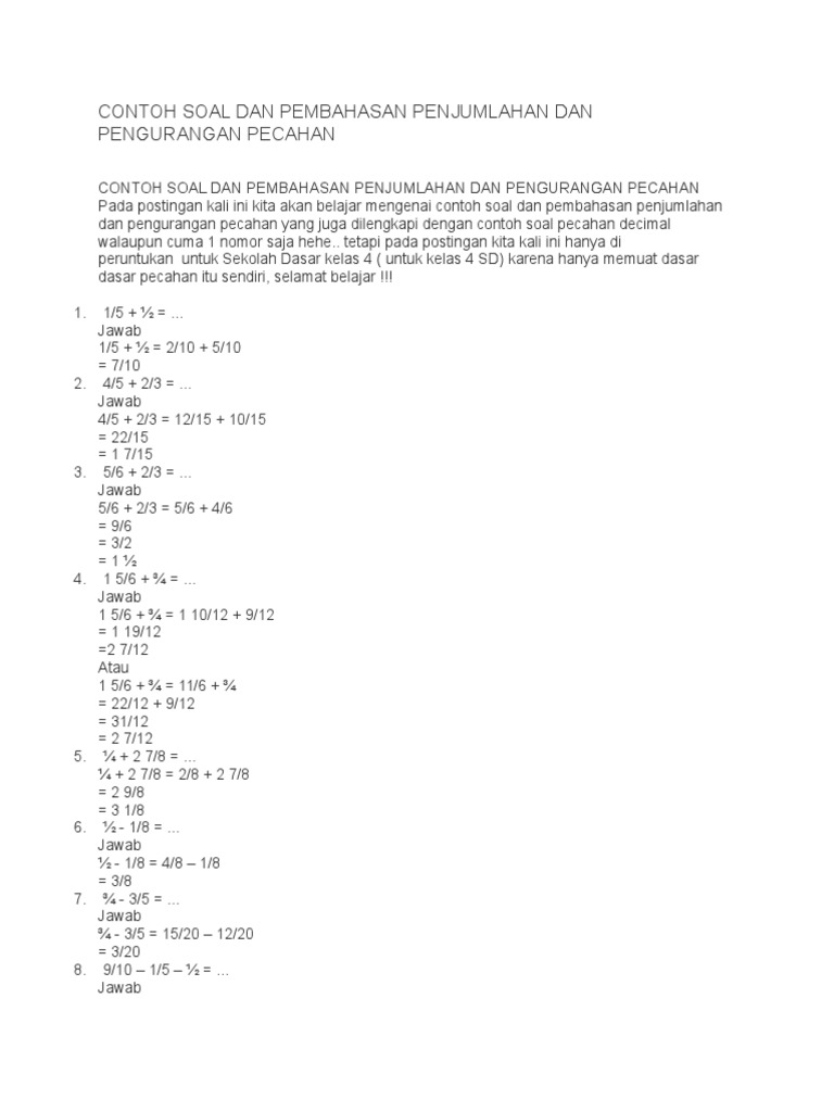 Untuk mempermudah belajar mengenai bilangan pecahan kita bisa melakukannya dengan mempelajari contoh soal pecahan untuk kelas 4. Linda marselina, tiurlina tiurlina, neneng sri wulan. Anak anak silahkan disimak ya, soal yang ada di modul mirip seperti contoh yang ada di video ini. Matematika dasar (penjumlahan,pengurangan,perkalian,pembagian,angka pecahan,bilangan desimal ). Inti dari materi pecahan senilai yaitu siswa mampu menunjukkan.